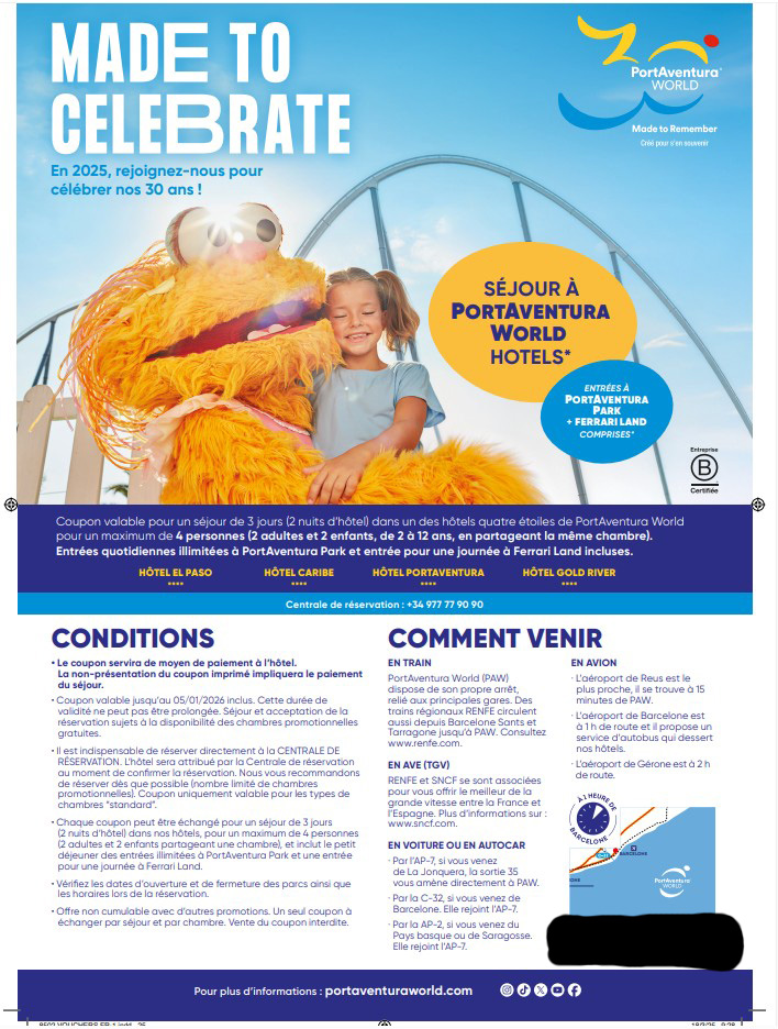 séjours PORT AVENTURA WORLD Voyages, WE, Coffrets, Spectacles, Ev. sportifs 400€ |
