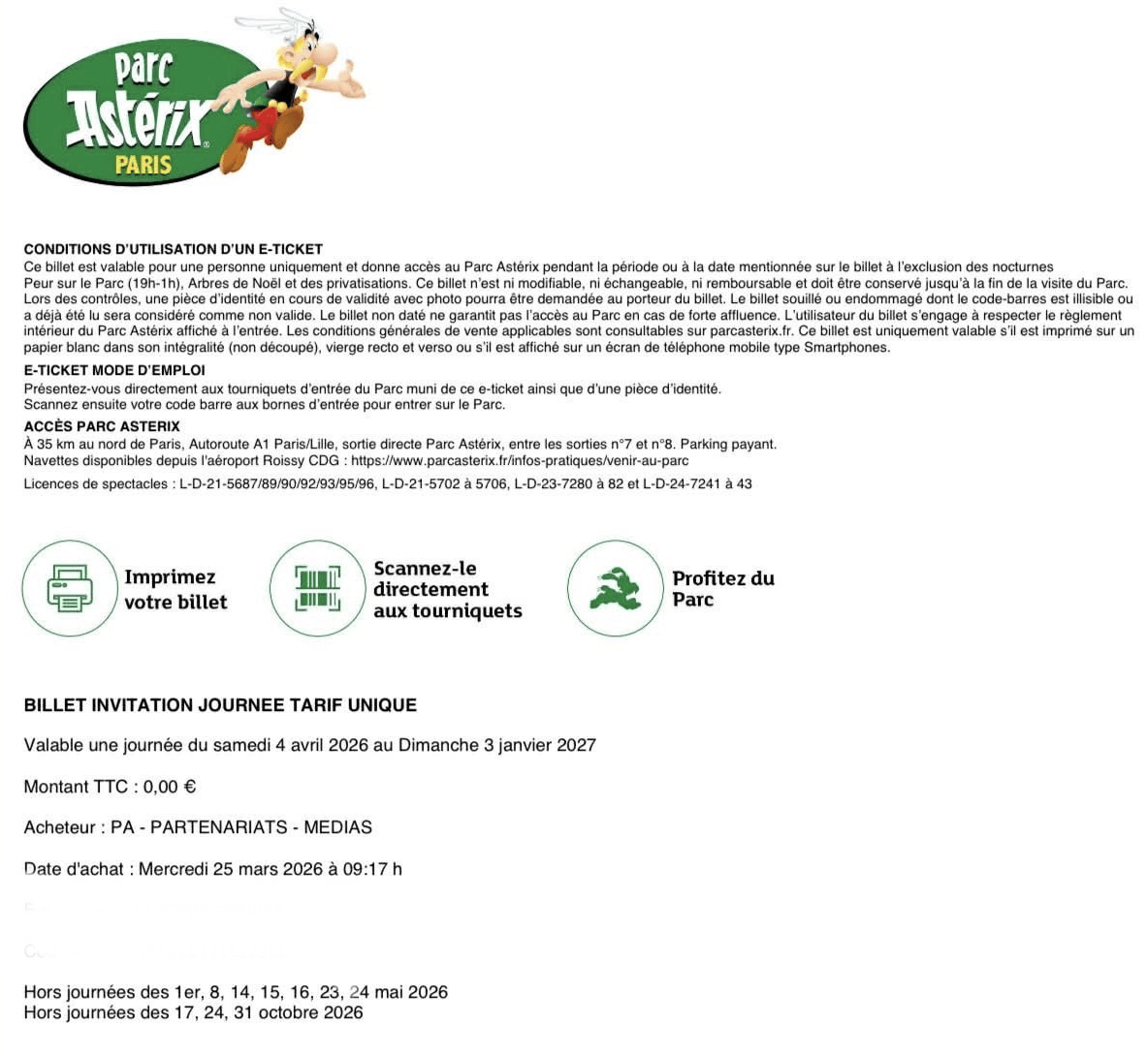 Billets Parc Astérix Entrées, Parcs d'attractions 30€ |